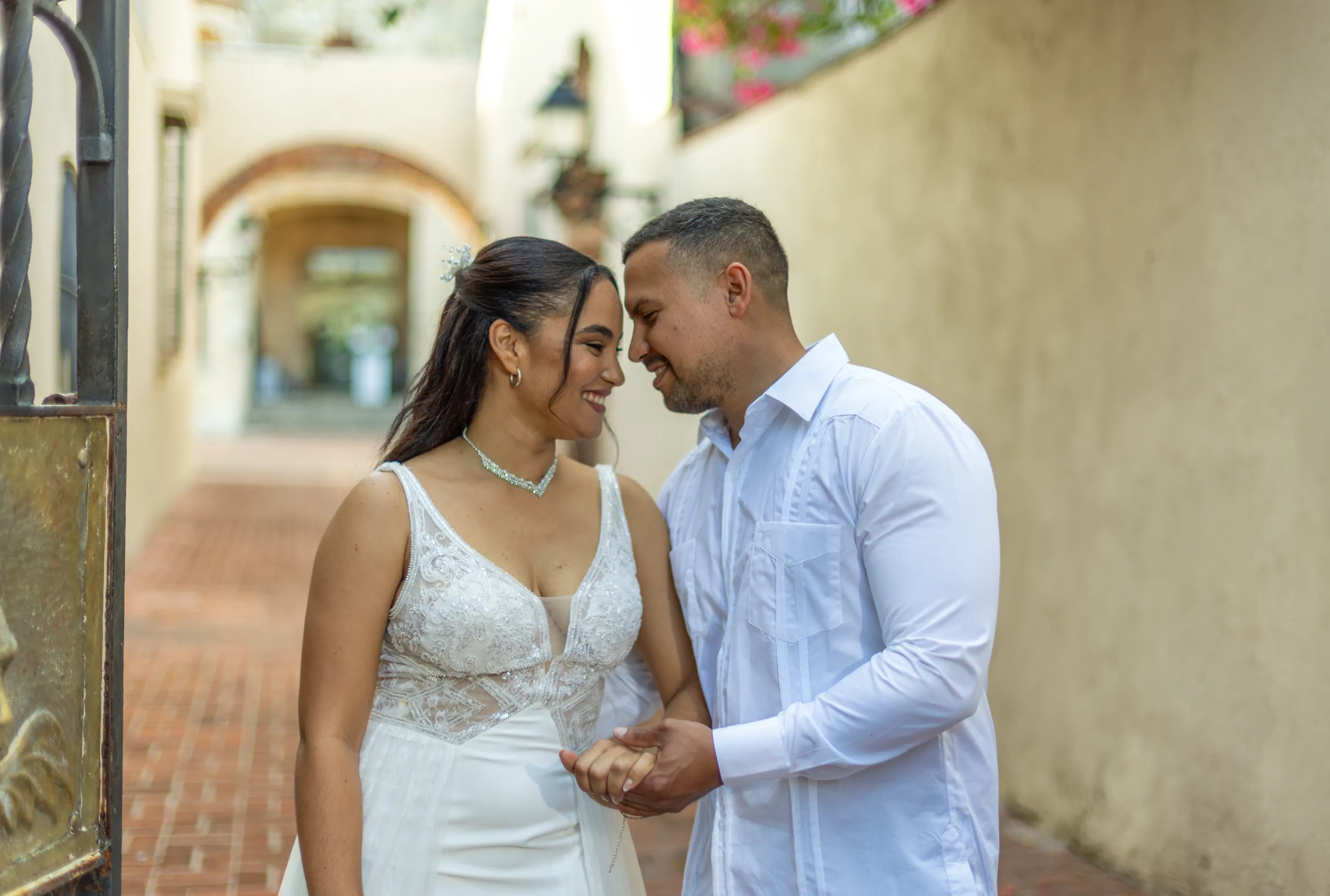 Una hermosa pareja captura su amor en un entorno encantador. ¡Contáctanos para tus necesidades de fotografía de bodas en Santo Domingo!Como fotógrafo de bodas en Santo Domingo, nos especializamos en capturar momentos inolvidables. Permítenos documentar tu día especial en la República Dominicana con nuestros servicios de fotografía profesional.